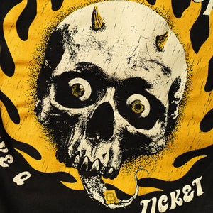 Ticket Tee. Printed front with soft inks printed on our light-weight, soft Premium black cotton t-shirts.