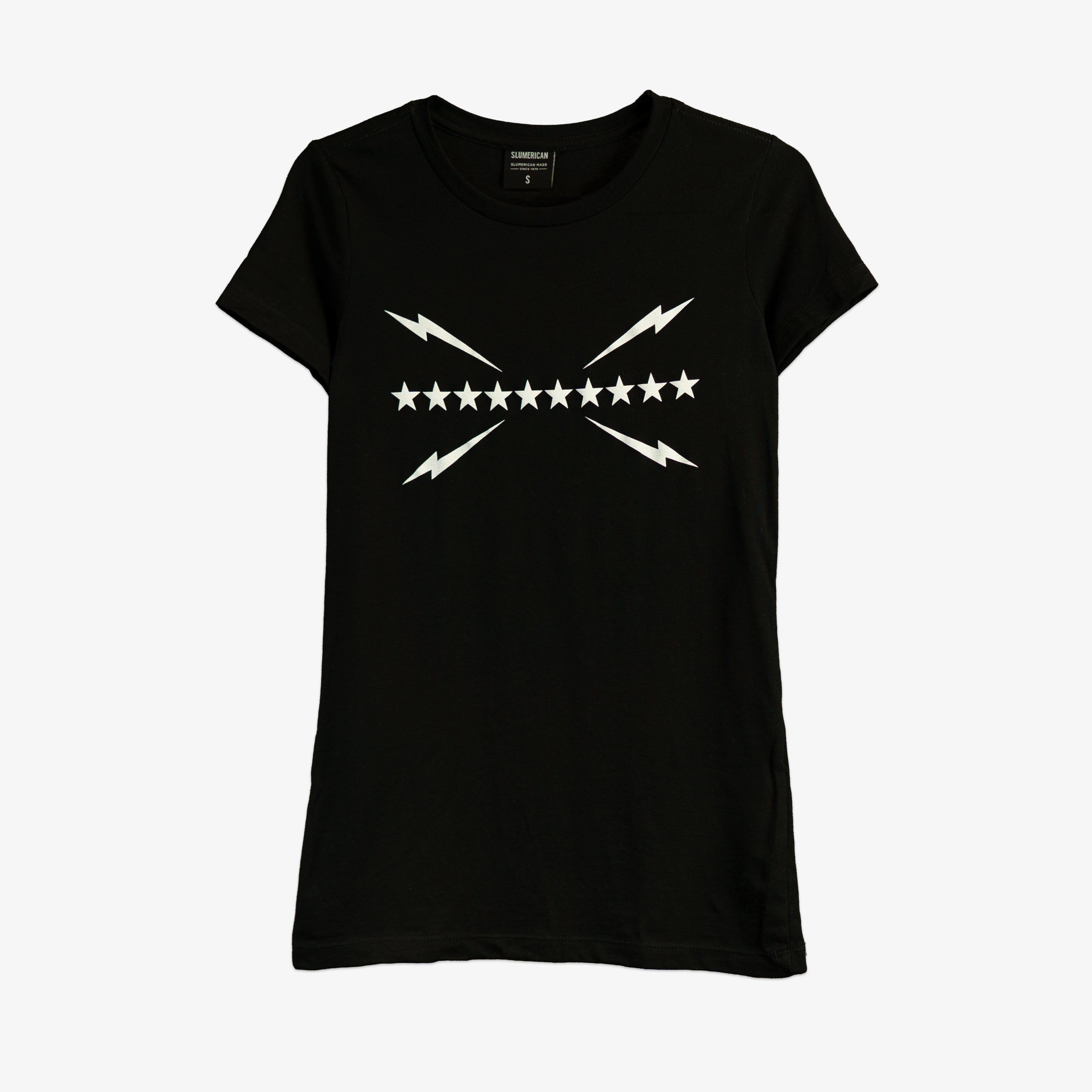Women’s Flag Tee. Soft inks printed on our light-weight, full-length Women’s black tees.