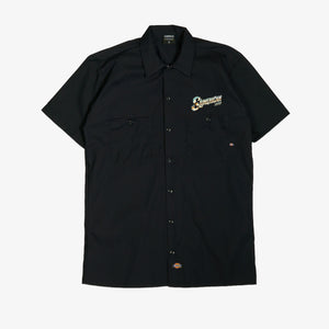 • Chrome Dickies Work Shirt. Printed left chest & full back. Soft inks printed on Black Dickies Work Shirts.